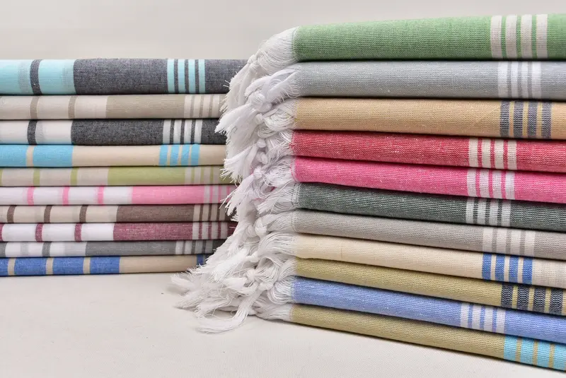 Beach Towel Personalized Turkish Cotton Beige Stripes, 38x67 Inches
