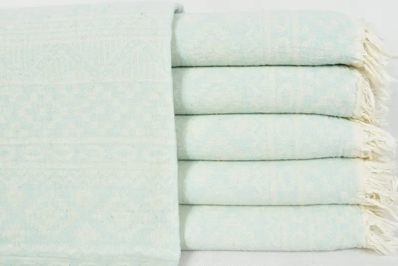 MINT Wedding Gift Towel, Turkish Cotton Aztec Design, Green White, 36x70 Inches