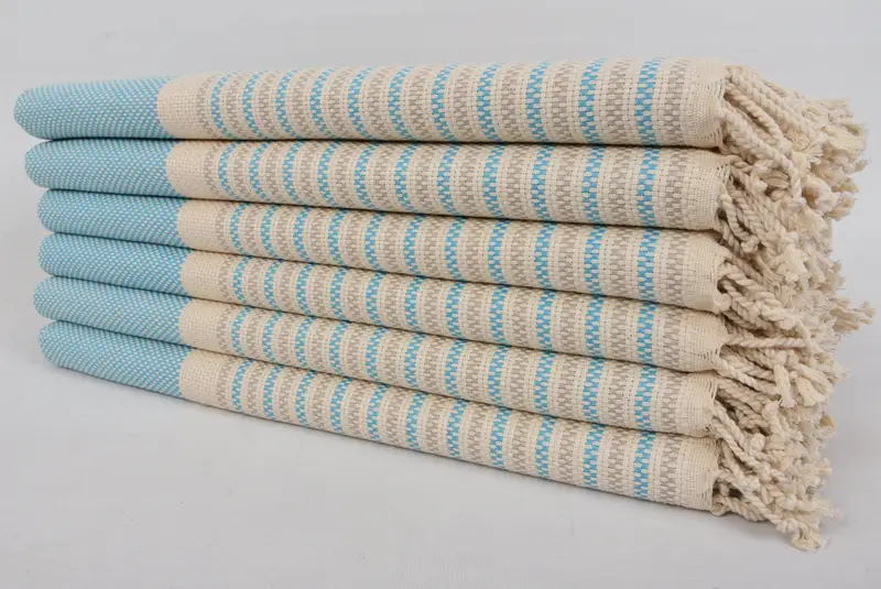 Personalized Turkish Bath Towel Embroidered Beige Blue, 40x70 Inches