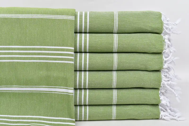 Personalized Monogram Beach Towel Light Khaki Green Striped, 40x71 Inches