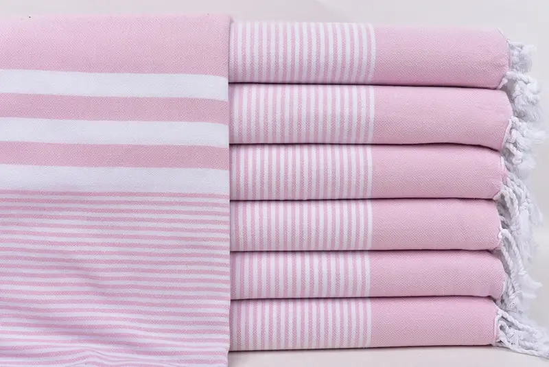 Embroidered Beach Towel Light Powder Pink Striped, 40x71 Inches