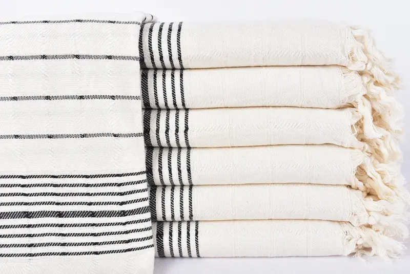 Personalized Turkish Cotton Beach Towel Beige Stripes, 40x71 Inches
