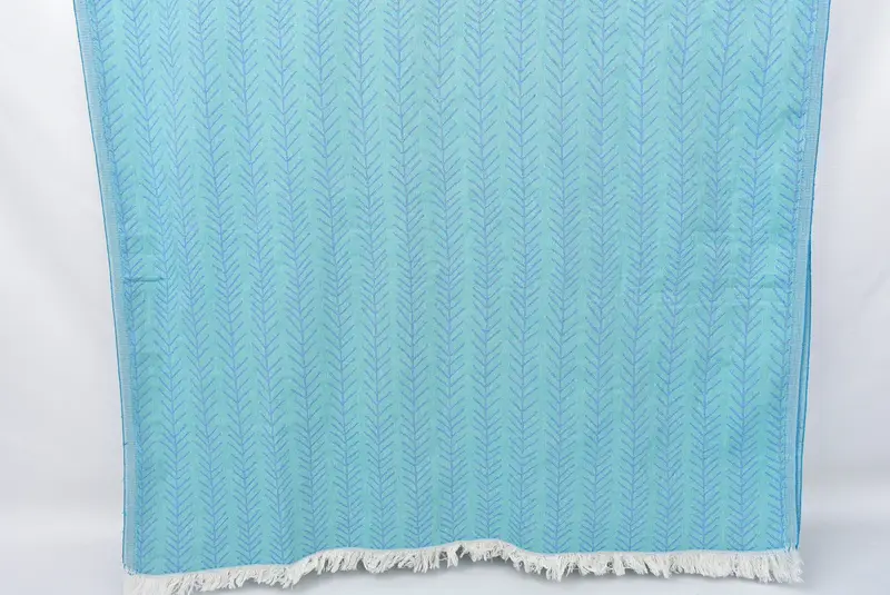 Turkish Beach Towel, Floral Patterned Turquoise-Sax Blue, 36x71 Inches