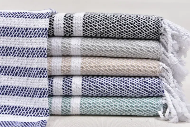 Small Turkish Towel Beige Stripes, 24x44 Inches, Cotton