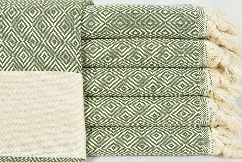 Embroidered Turkish Towel Khaki Green Diamond, Cotton, 40x70 Inches