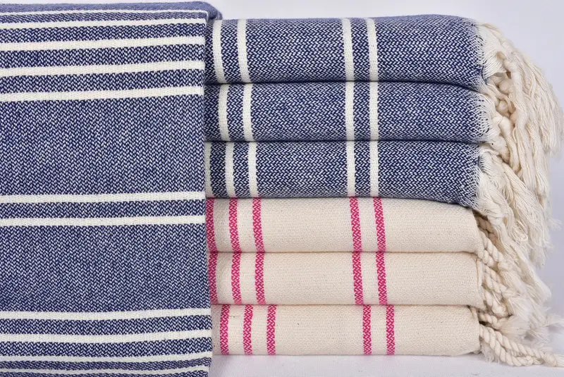 Turkish Beach Towel Beige Striped Cotton, 40x71 Inches