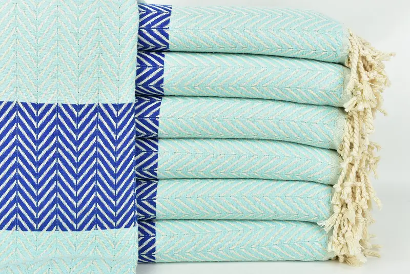 Turkish Beach Towel Personalized Mint-Sax Blue Chevron, 40x71 Inches