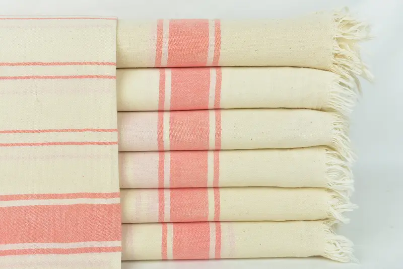 Personalized Turkish Beach Towel Striped Vermilion Beige, 36x67 Inches
