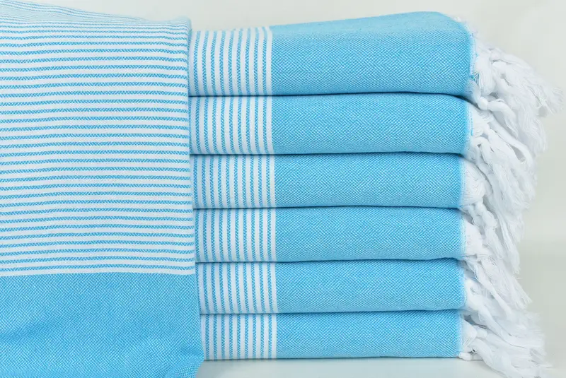 Personalized Turkish Beach Towel Turquoise Striped, 40x71 Inches