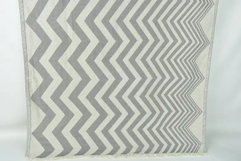 Turkish Towel Dark Gray Zigzag, Beach Towel, Beige Secondary, 40x71 Inches