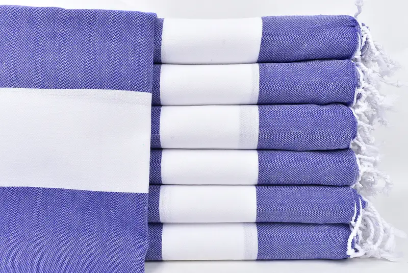 Organic Cotton Beach Towel Navy Stripes with Beige, 40x71 Inches