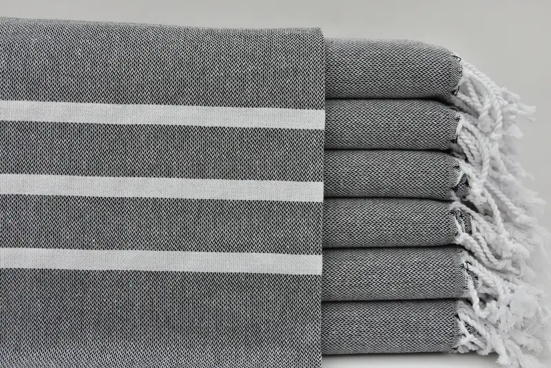 Bulk Black Striped Turkish Cotton Beach Towel, 40x70