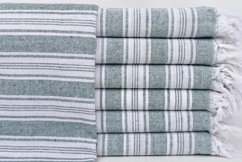 Turkish Towel Dark Green Striped Beach Towel, 32x67 Inches