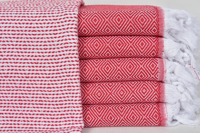 Beach Towel Personalized Organic Red Diamond, Turkish Cotton, 40x70 Inches