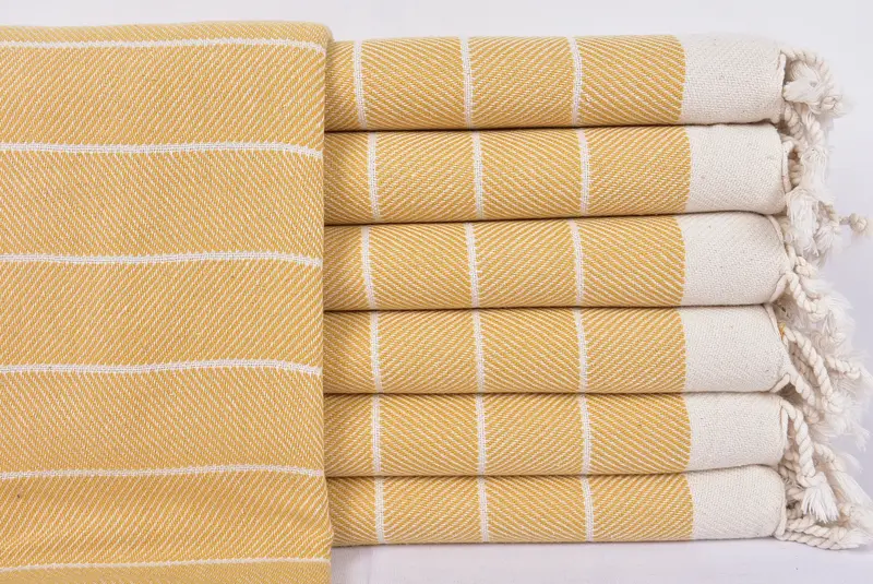 Organic Cotton Beach Towel Beige Herringbone Pattern, 40x71 Inches