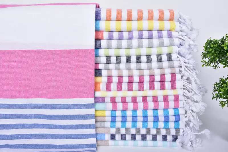 Beach Towel Personalizable Turkish Cotton Beige Striped, 40x71 Inches