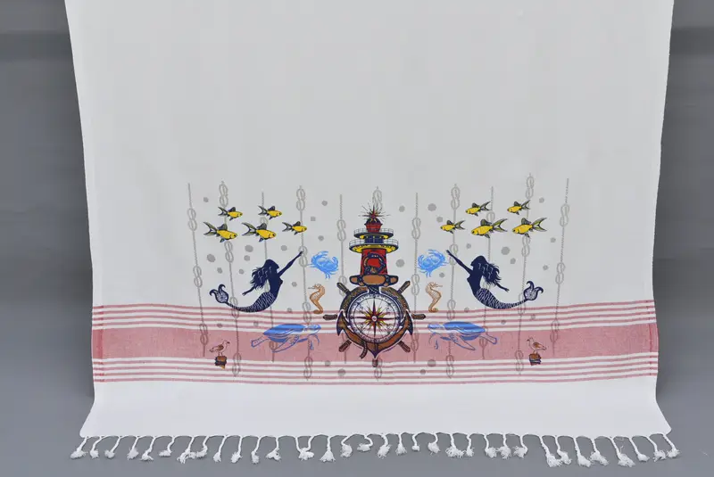 Turkish Bath Towel White Pink Printed Lighthouse, 40x70 inches