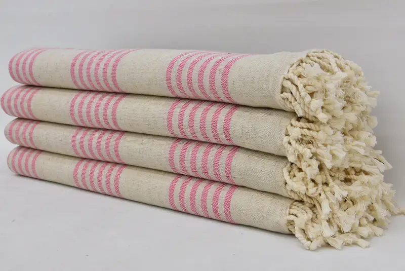 Turkish Bath Towel Beige Pink Stripes, Beach Towel, 40x70 Inches