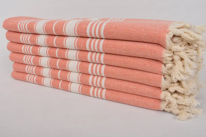 Personalized Turkish Beach Towel, Orange Beige Embroidered, 36x70 Inches