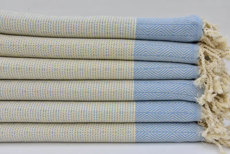 Peshtemal Towel Light Blue Pattern Turkish Cotton Beach Towel, 40x70 Inches