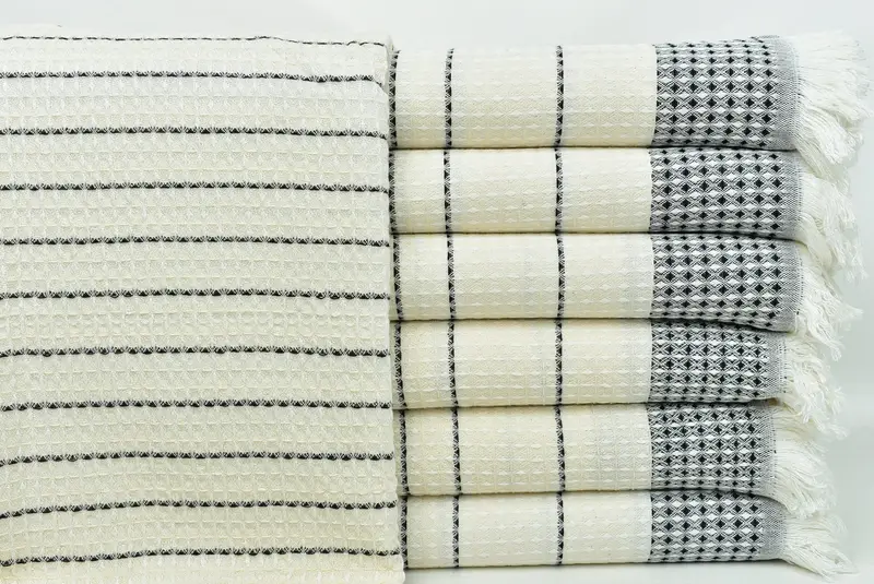 Turkish Towel Beach Towel Black Waffle Cotton, Beige, 40x71 Inches