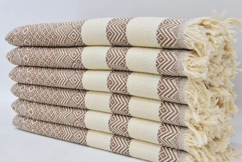 Holiday Towel Turkish Cotton Brown Diamond Design Beach Towel, 40x66 Inches