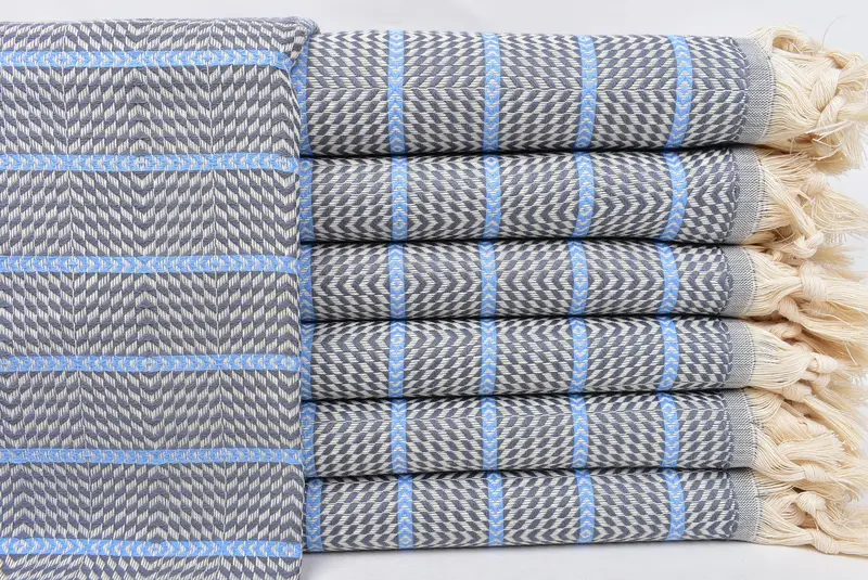 Beach Towel Dark Gray-Blue Striped Turkish Cotton, 40x71 Inches