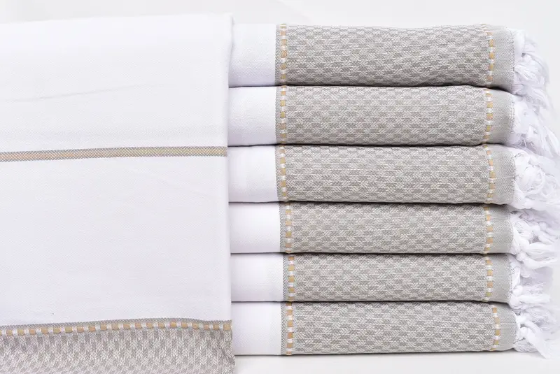 Organic Cotton Beach Towel Beige Striped Embroidered, 40x71 Inches