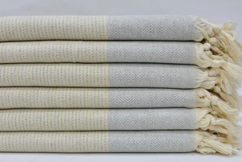 Wedding Gift Towel Turkish Beach Towel Organic Cotton Light Gray Diamond, 40x70 Inches