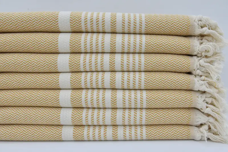 Hammam Peshtemal Handcrafted Mustard Turkish Cotton Striped Towel, 40x70 Inches