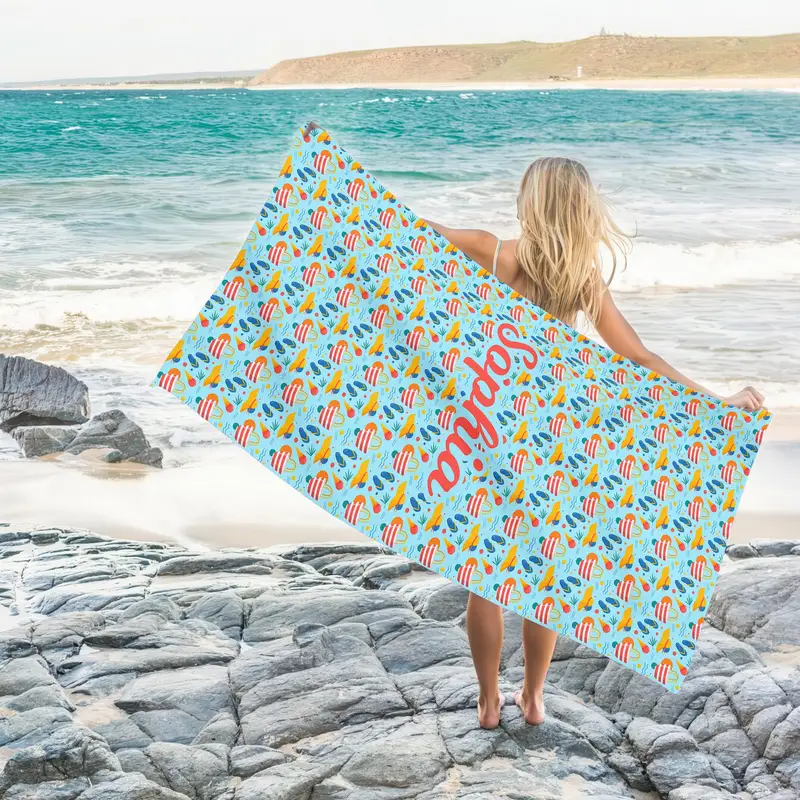 Beach Towel Personalized Turkish Cotton Blue, 28x53 Inches