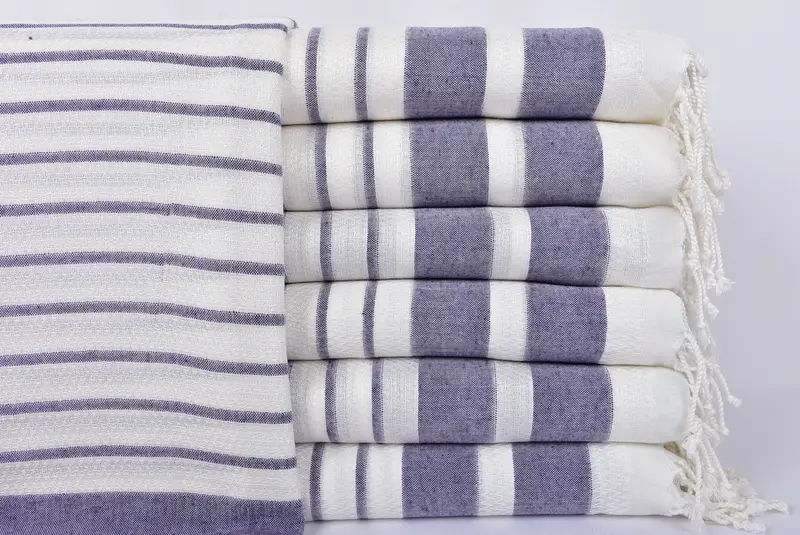 Organic Beach Towel, Turkish Cotton Striped, Beige, 39x73 Inches