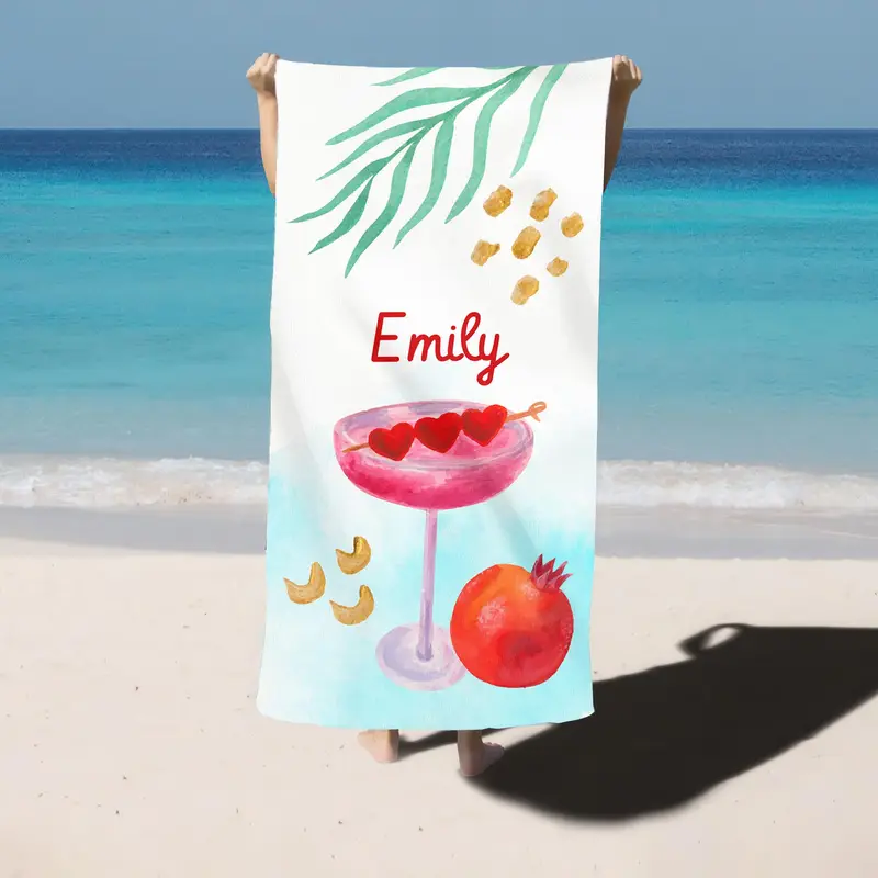 Personalized Turkish Towel Organic Cotton Cocktail Design, 28x53 Inches