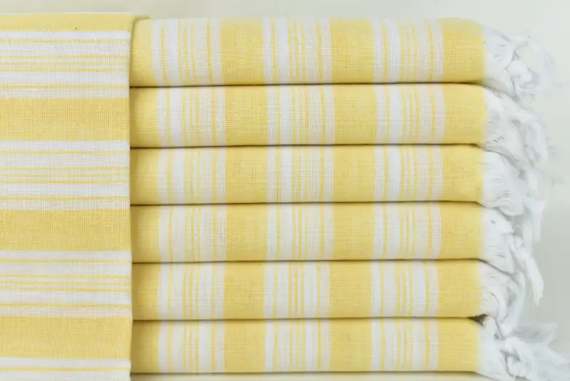 Striped Towel Yellow Organic Cotton, Beach Towel, 40x71 Inches