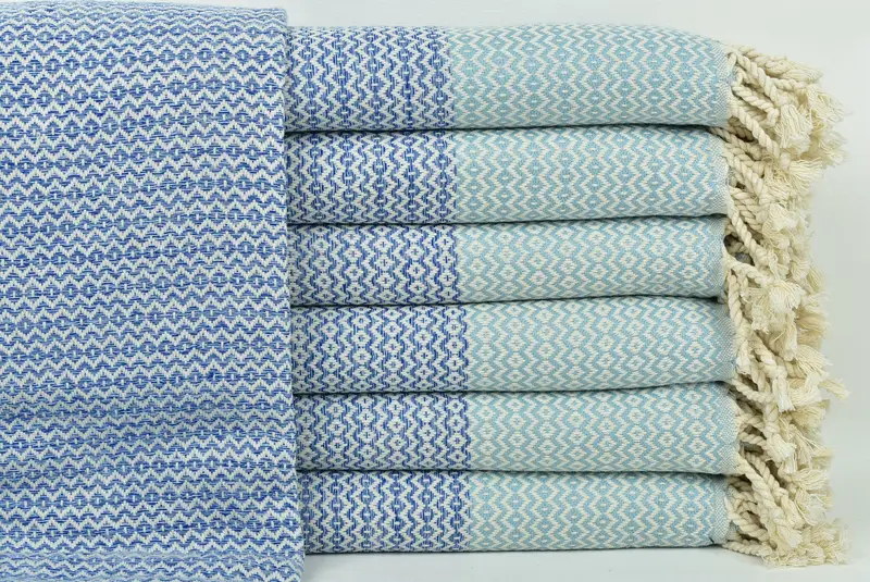 Custom Turkish Towel Sax Blue-Baby Blue Diamond Towel, 40x71 Inches