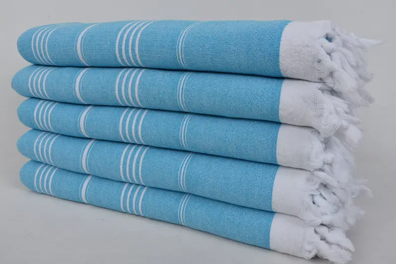 Turquoise 36x63 Embroidered Turkish Beach Towel, Blue and White