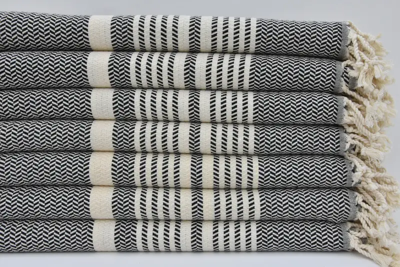 Natural Black Turkish Cotton Beach Towel Striped, 40x70