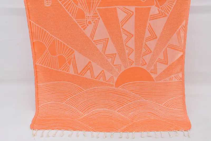 Turkish Towel Beach Towel Orange, Beige, Cotton, 40x70 Inches