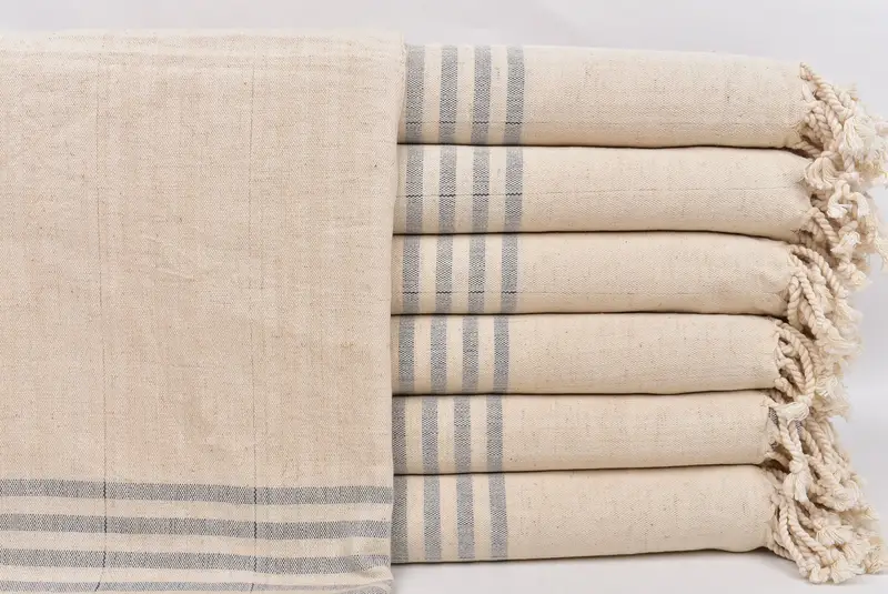 Monogram Beach Towel Dark Gray Striped Linen, 36x67 Inches