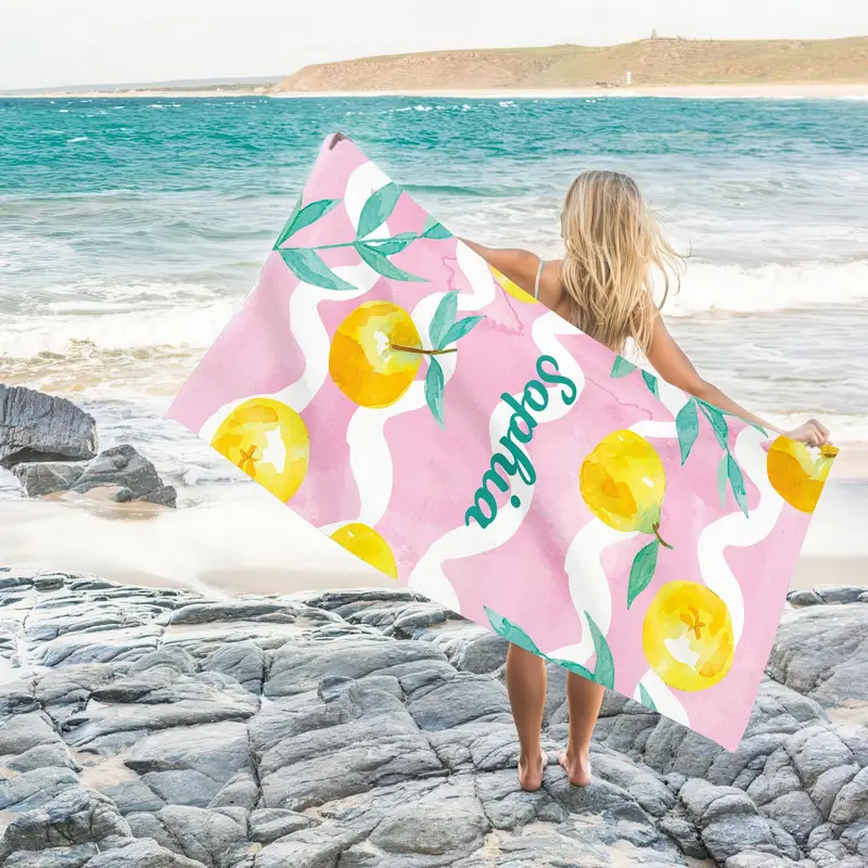 Personalized Turkish Beach Towel Lemon Design Organic Cotton, 28x53 Inches