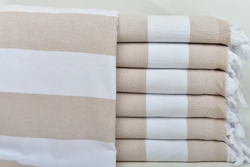 Turkish Towel Monogrammed Beach Towel Beige Striped Terry, 36x63 Inches