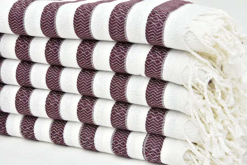 Burgundy Striped Beach Towel Soft Turkish Cotton, 40x70 Inches