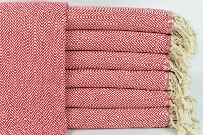Turkish Beach Towel Personalized Red Herringbone, 40x71 Inches