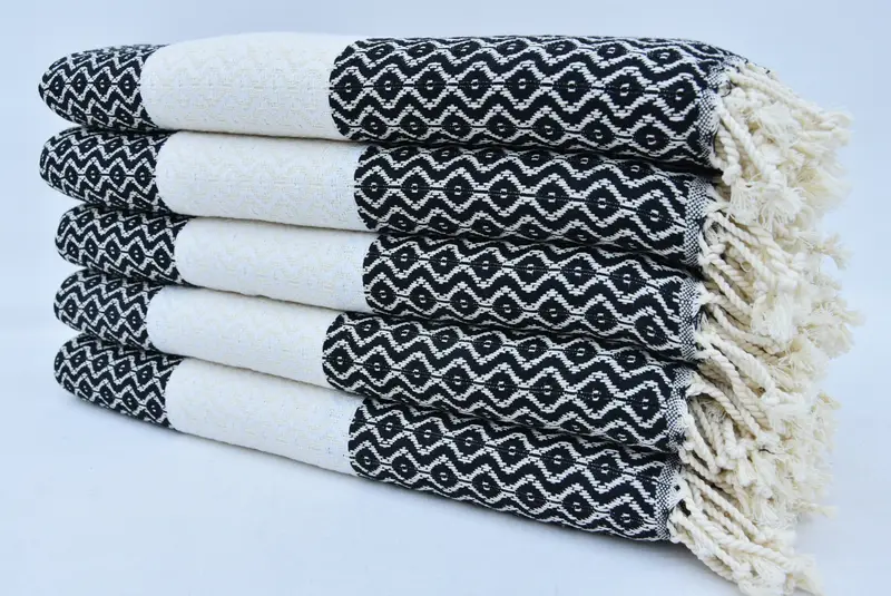 Personalized Beach Towel Black Cotton Embroidered, 40x66 Inches