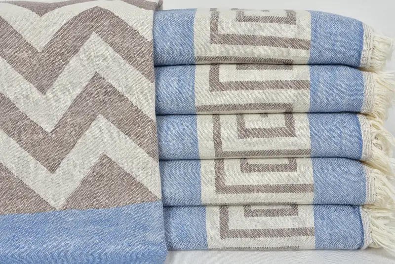 Beach Towel Personalizable Turkish Cotton Brown Blue, 36x70 Inches