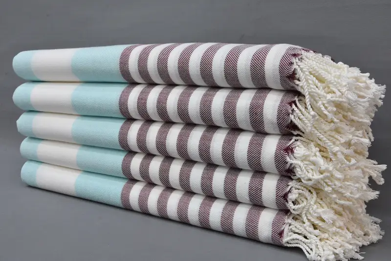 Soft Cotton Peshtemal Towel, Green and Red Stripes, 40x70 Inches