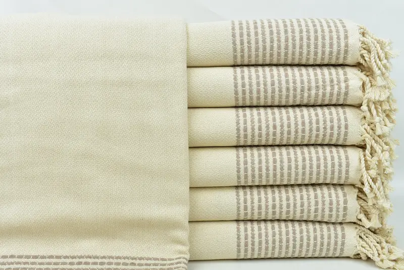 Turkish Towels for Beach, Personalized Light Beige Striped Towel, 36x69 Inches