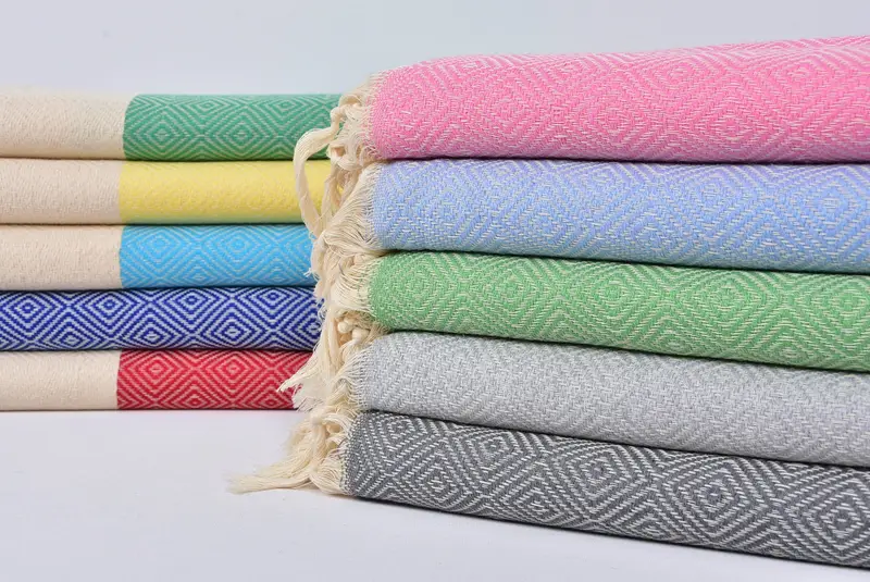 Throw Blanket Turkish Cotton Beige Diamond Pattern, 79x91 Inches