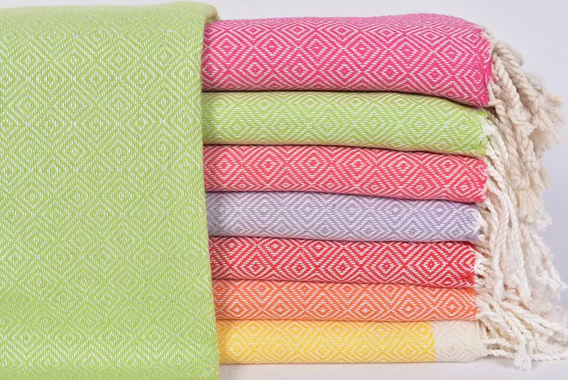 Turkish Towel Personalized Beach Towel Diamond, Beige, Cotton, 40x71 Inches