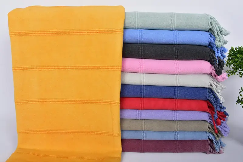 Turkish Towel Beach Towel Stonewashed Beige Cotton, 36x63 Inches
